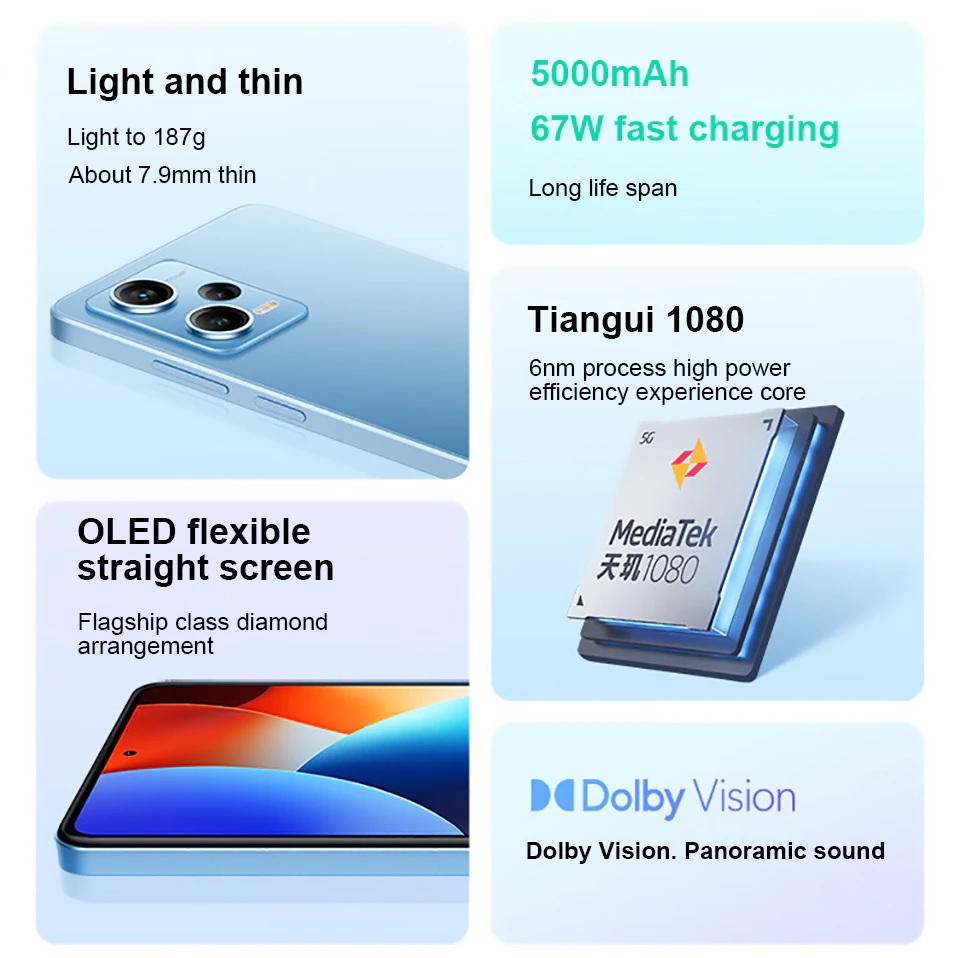 红米Note 12 Pro 5G智能手机尺寸1080八核6.67 OLED显示屏5000mAh 67W快速充电